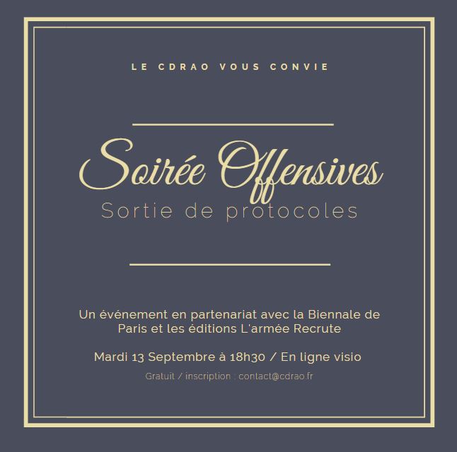 Le CDRAO (Centre Documentation Recherche Application des Offensives) vous convie à une soirée Offensives / Sortie de protocoles.